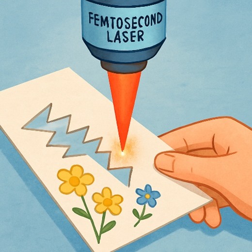 宇都宮大学の研究チームは、「フェムト秒レーザー」というとても短い時間だけ光を出す特別なレーザーを使って、紙をとてもきれいに、しかもあまり色が変わらないように切ることに成功しました。