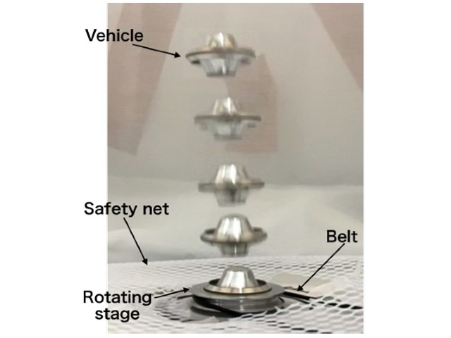 東北大学と大阪公立大学は、独自に開発した「複数放物面レーザー推進機」の打ち上げ実験を行ない、繰り返しパルスレーザーの照射により、機体全長約15mmの約7倍の高度110mmまで自由飛行させることに成功した。