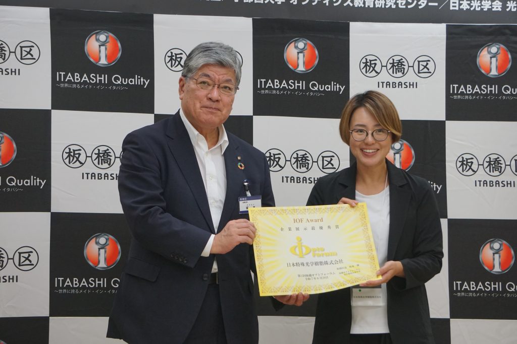 IOF Awardでは,日本特殊光学樹脂が最優秀賞を受賞し,奨励賞にはイネイブルと東京都立産業技術研究センターが選ばれた。日本特殊光学樹脂 営業部長の大久保絵里子氏は「これからも良い製品をつくり続け,社会に貢献していきたい」と抱負を述べた。