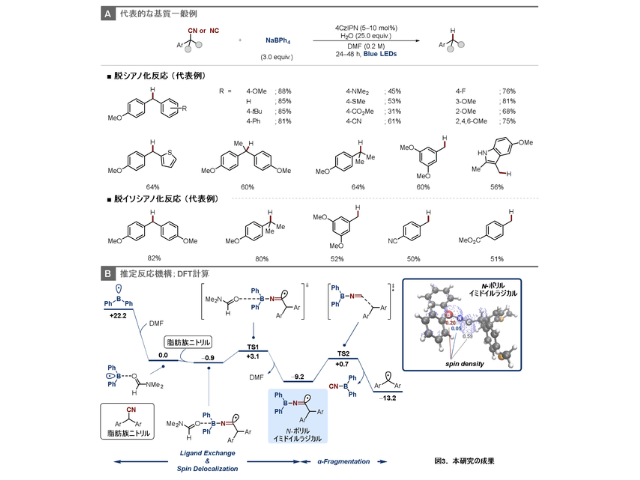 研究グループは、今回の成果は、ホウ素ラジカル化学の応用可能性を大きく広げるとともに、今後のシアノ基を足掛かりとした反応開発における重要な指針となることが見込まれるとしている。